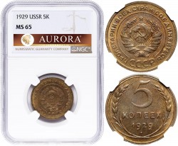 5 копеек 1929 года. NGC MS65. ТОП-грейд