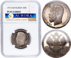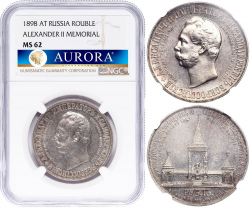1 рубль 1732 года. Кадашевский монетный двор. С брошью на груди. Скипетр с трилистником. Серебро. Биткин №54. Сохранность MS63, штемпельный блеск, легкая патина. В слабе PCGS. ТОП-грейд.
