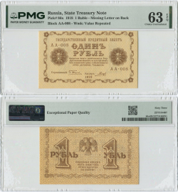 1 рубль 1918 года. Пятаков/Гальцов. Опечатка "УБЛЬ".